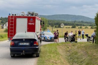Dramatyczne chwile na drodze w Kołaczycach. Jasielscy policjanci po służbie uratowali 1,5-roczną dziewczynkę