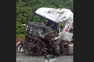 Czołowe zderzenie dwóch tirów w Zarzeczu