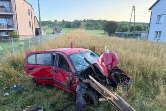 Poważny wypadek drogowy w Nawsiu Kołaczyckim. Samochód uderzył w drzewo i słup – dwóch mężczyzn rannych
