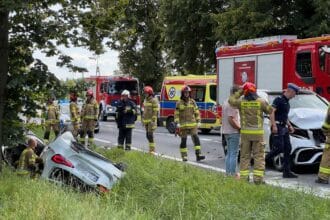 Zderzenie dwóch samochodów na drodze krajowej nr 73 w Jaśle