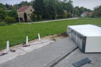 Incydent przy ul. 17-go Stycznia w Jaśle. Ktoś przewrócił paczkomat