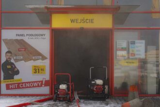 Pożar w Merkury Market w Krośnie. Śledczy szukają przyczyny pożaru