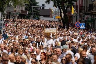 Boże Ciało w Jaśle. Tłumy wiernych w procesji ulicami miasta