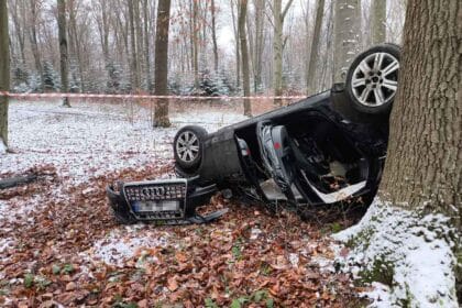 Pędził zbyt szybko, uderzył w drzewa, a następnie dachował. Dwóch uczestników wypadku…