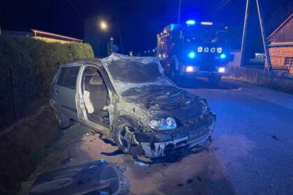 Niespokojna noc w Brzyskach. Dwa pożary samochodów i dachowanie