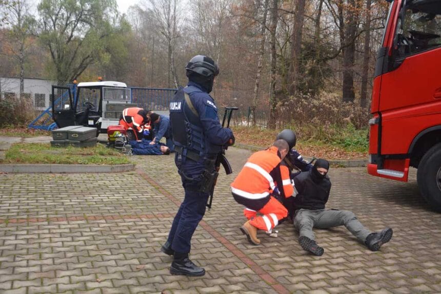 Na terenie Zakładu Produkcji Specjalnej w Jaśle odbyły się ćwiczenia, które miały za zadanie sprawdzić współdziałanie służb w sytuacji kryzysowej, w tym reagowaniu na zagrożenie terrorystyczne i chemiczne.