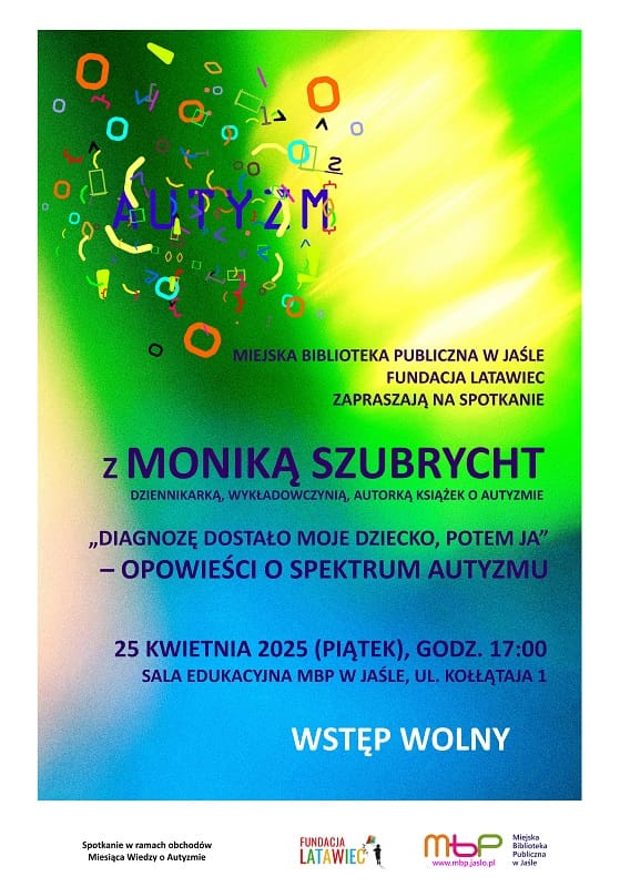 Miejska Biblioteka Publiczna w Jaśle i Fundacja LATAWIEC zapraszają na spotkanie z Moniką Szubrycht, dziennikarką, wykładowczynią, autorką książek o autyzmie.
