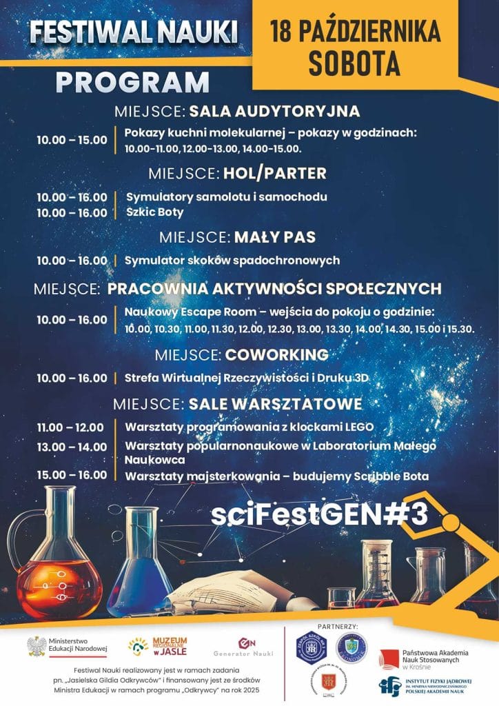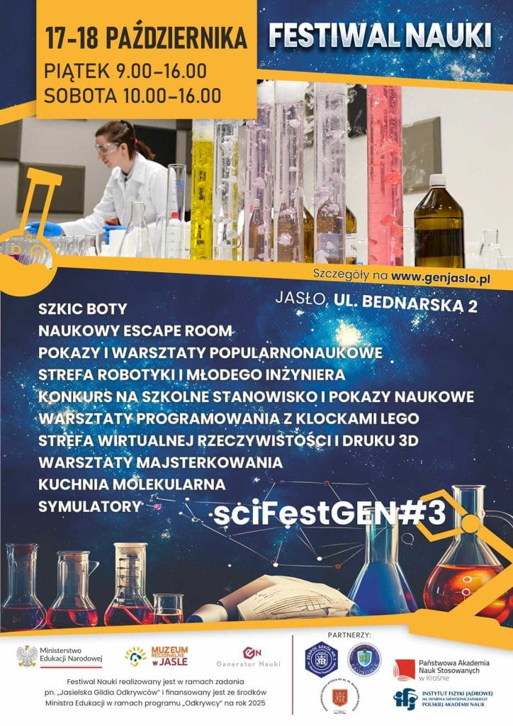 Szczegółowy program Festiwalu Naukowego sciFestGEN#3 znajduje się na stronie internetowej: https://genjaslo.pl/aktualnosci/festiwal-nauki-scifestgen3-w-generatorze-nauki-gen/