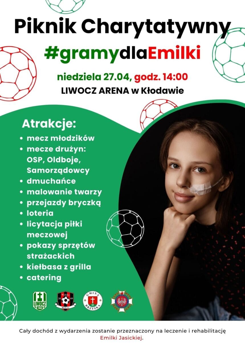 W niedzielę 27 kwietnia o godzinie 14:00 na LIWOCZ ARENIE w Kłodawie odbędzie się Piknik Charytatywny pod hasłem #gramydlaEmilki. Organizatorzy przygotowali wiele atrakcji dla całych rodzin.