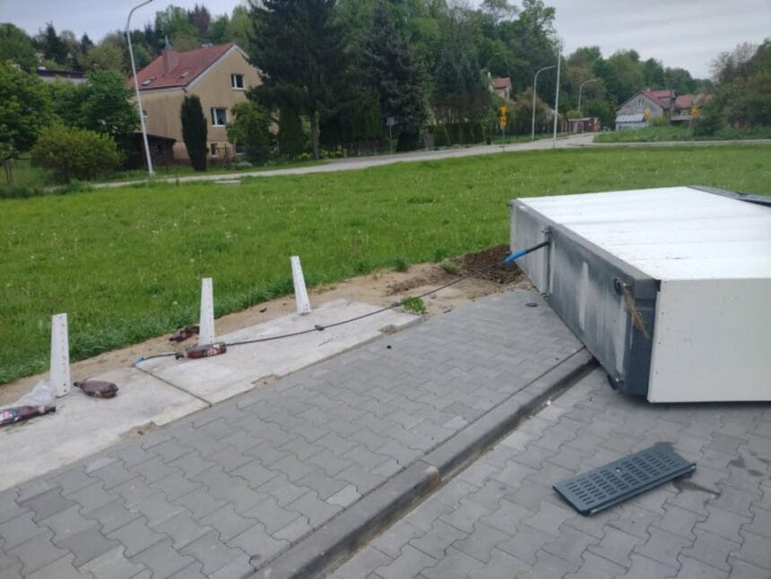 W poniedziałkowy poranek, 5 maja, w Jaśle przy ul. 17-go Stycznia, w bezpośrednim sąsiedztwie marketu Dino, doszło do niecodziennego incydentu. Paczkomat firmy InPost został przewrócony.