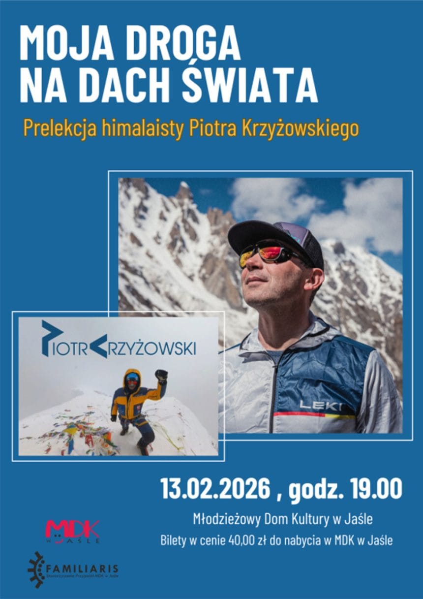 Wyjątkowe spotkanie z człowiekiem, który zapisał się złotymi zgłoskami w historii światowego himalaizmu, już 13 lutego o godz. 19 w Młodzieżowym Domu Kultury w Jaśle. Piotr Krzyżowski – himalaista, ratownik GOPR i prawnik – będzie gościem Młodzieżowego Domu Kultury, gdzie opowie o swoich niezwykłych wyprawach w najwyższe góry świata. Bilety w cenie 40 zł dostępne na portierni MDK.