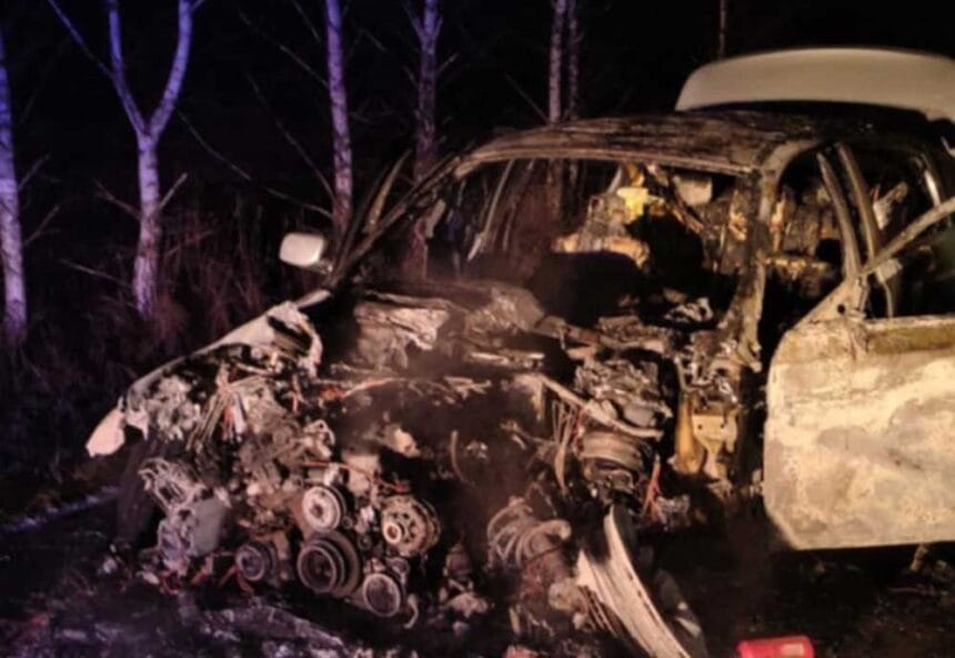 Dzisiejszej nocy chwilę przed godziną 3:00 druhowie OSP KSRG Osobnica otrzymali zgłoszenie o pożarze samochodu osobowego marki BMW.