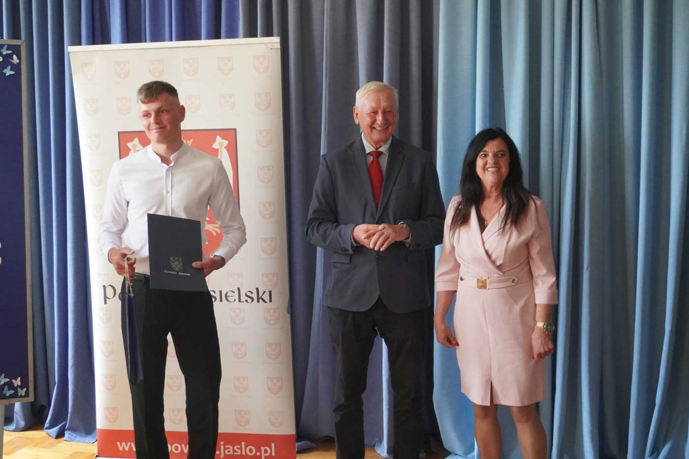 Uroczystego wręczenia wyróżnień dokonał Starosta Jasielski Adam Pawluś, który nie krył dumy i uznania wobec osiągnięć młodzieży. W swoim przemówieniu podkreślił, że wielu absolwentów jasielskich szkół kontynuuje naukę na renomowanych uczelniach, zdobywa prestiżowe stanowiska, a ich sukcesy są najlepszym dowodem na wysoki poziom edukacji w powiecie jasielskim. Podziękował również rodzicom oraz nauczycielom za wsparcie, jakie okazują uczniom w codziennej pracy, oraz zapewnił, że władze powiatu będą nadal inwestować w rozwój edukacji i infrastrukturę szkolną.