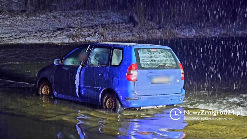 – Kierujący pojazdem próbował przejechać przez betonowe płyty, jednak w pewnym momencie prawa część samochodu znalazła się w nurcie rzeki, co stwarzało zagrożenie dla pasażerów – relacjonuje serwis nowyzmigrod24.pl.