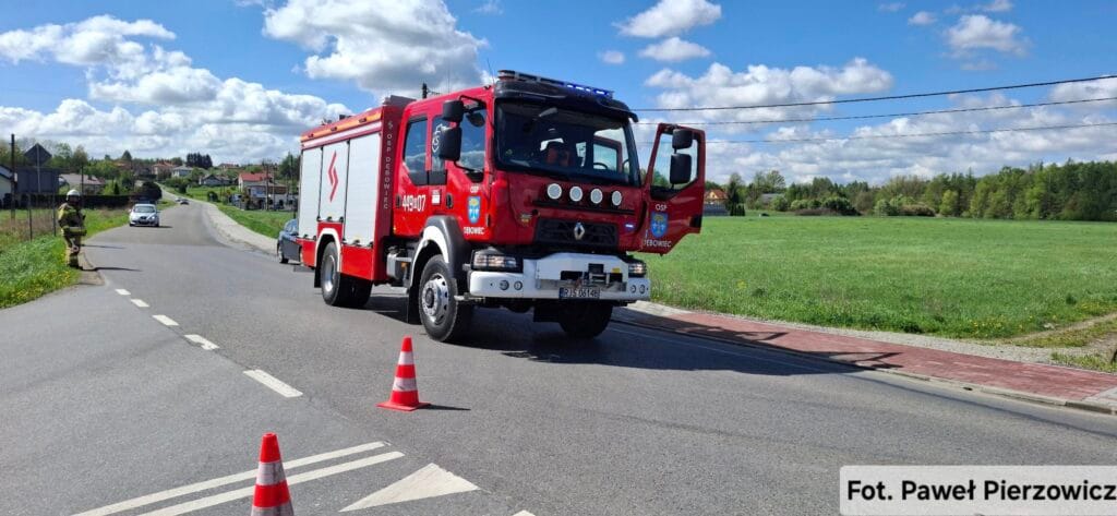 Po przybyciu na miejsce zdarzenia strażacy zastali czołowo-boczne zderzenie dwóch pojazdów. W wyniku wypadku jedna osoba została poszkodowana i przetransportowana do szpitala w Jaśle przez zespół ratownictwa medycznego.