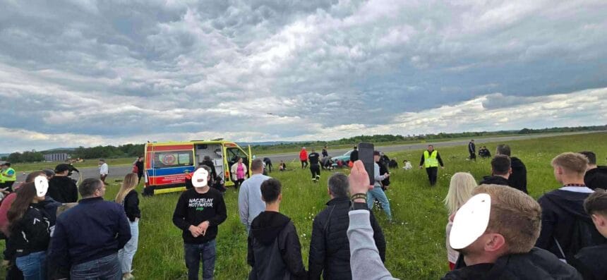 Co najmniej 14 osób zostało poszkodowanych w wypadku podczas wyścigu na 1/4 mili na lotnisku w Krośnie. pic.twitter.com/E82Y7noHWi